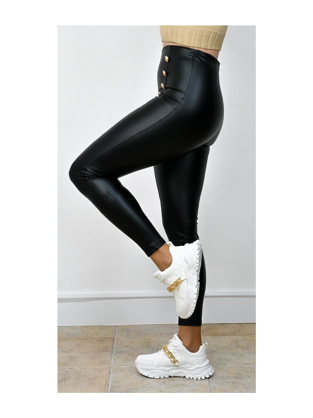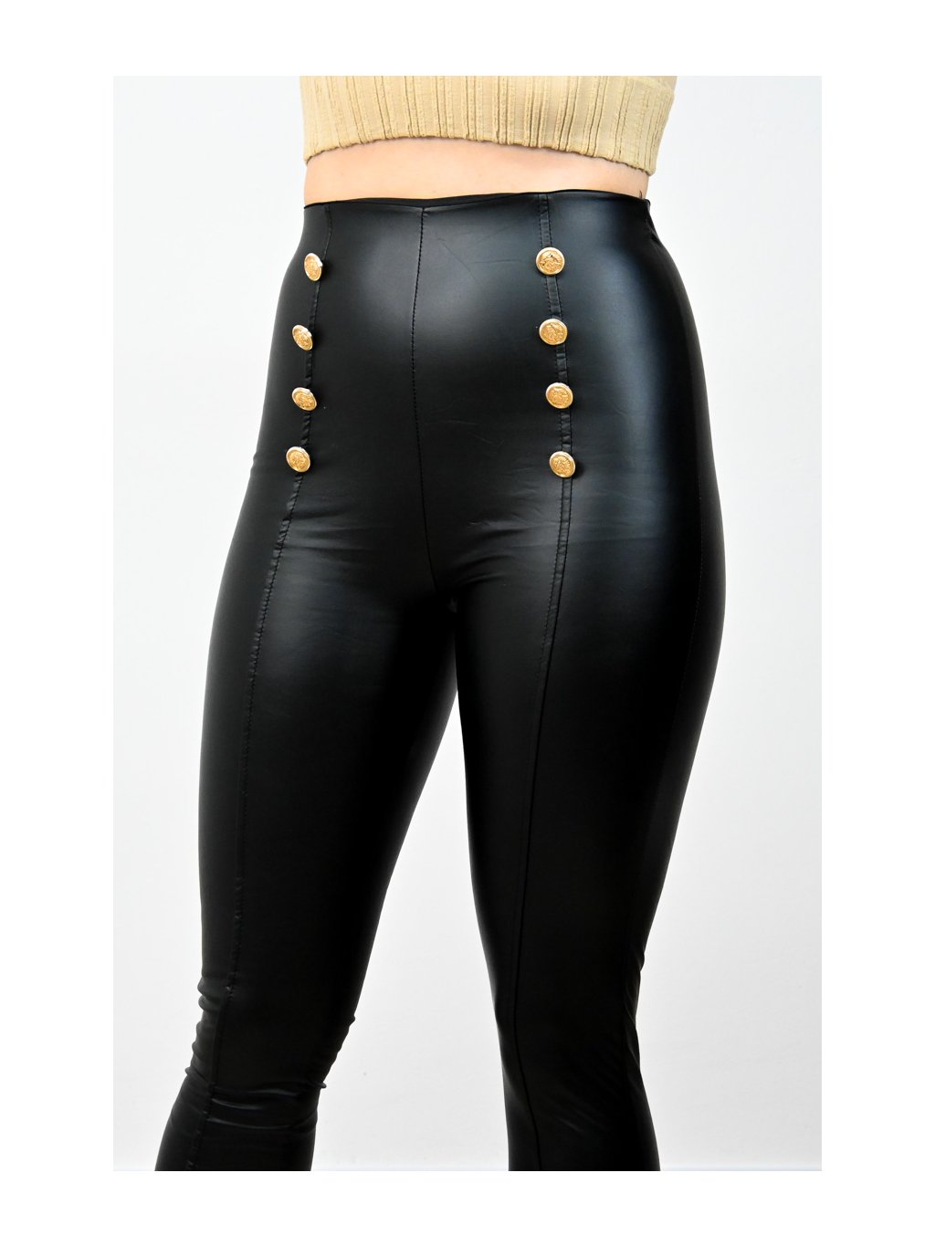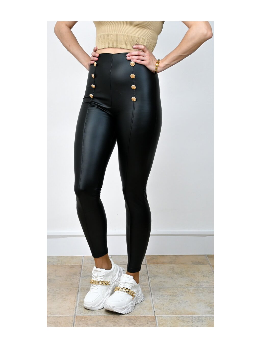 - legíny s vysokým pásom Buttons sú vyrobené z efektnej koženkovej látky, ktorá má jemný lesk a dodáva celému outfitu luxusný nádych
