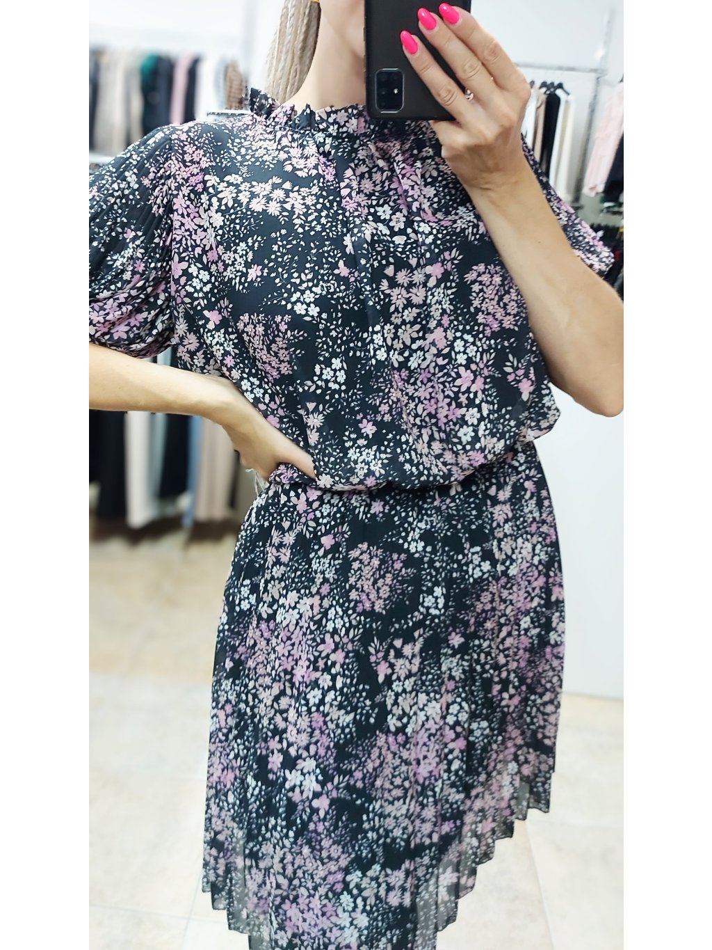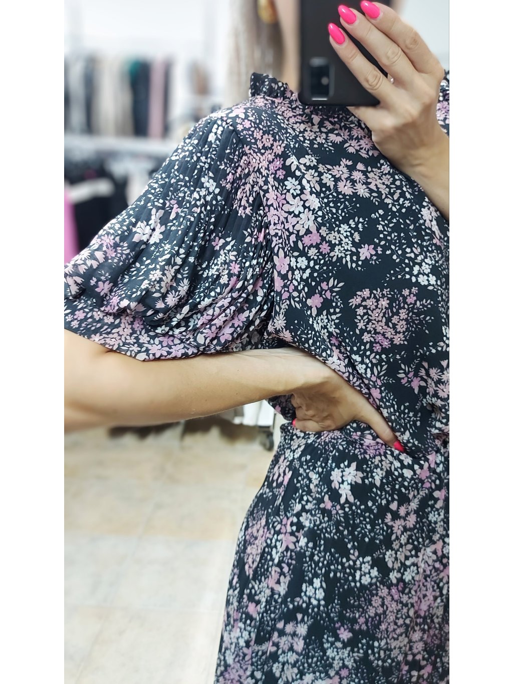 - na čiernom podklade sa rozprestiera jemný vzor drobných ružových kvietkov v rôznych odtieňoch – romantický a veľmi vkusný