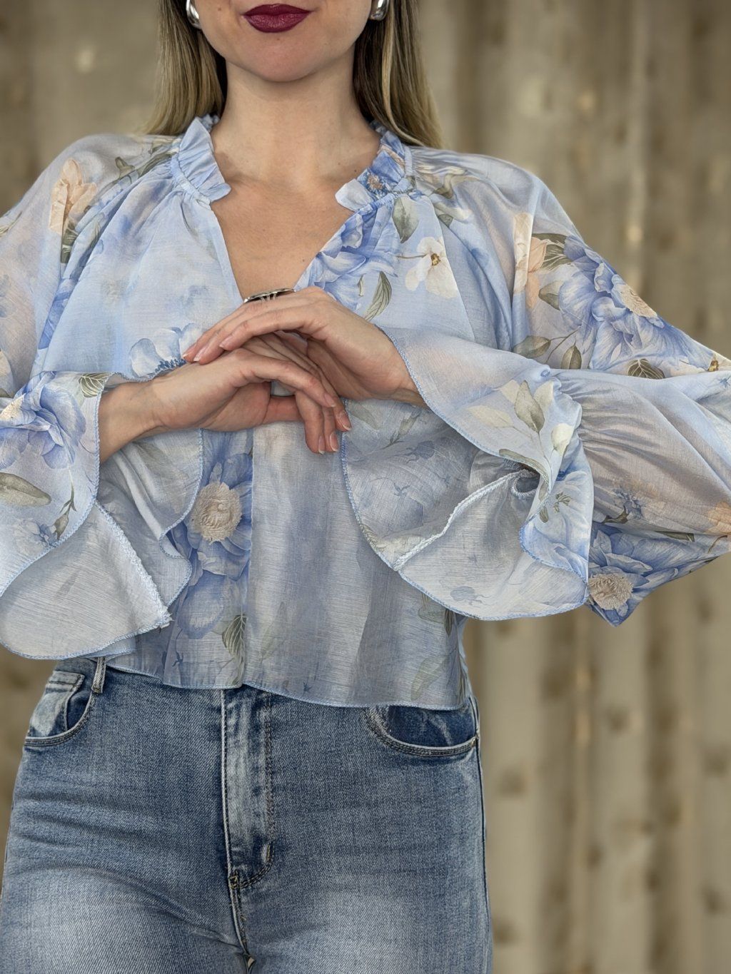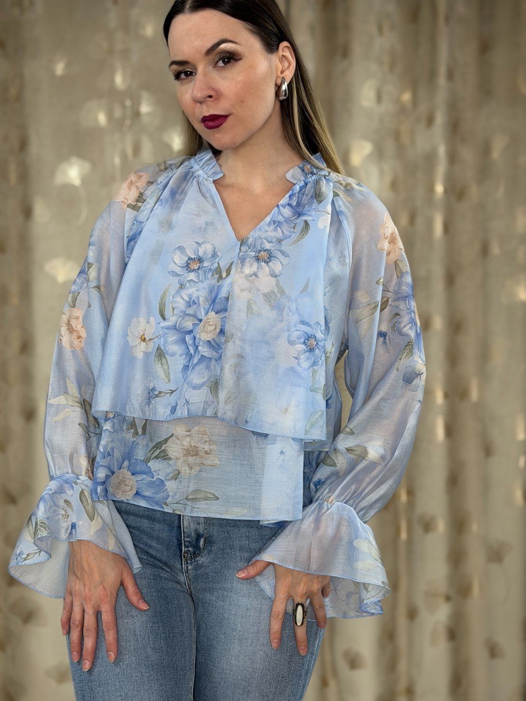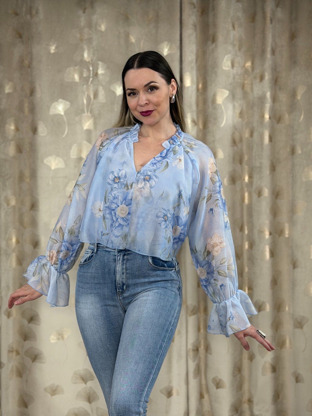- lyocell modrá blúzka Sarah je romantická dámska blúzka v nežnom bledomodrom odtieni, ktorý pôsobí sviežo a elegantne