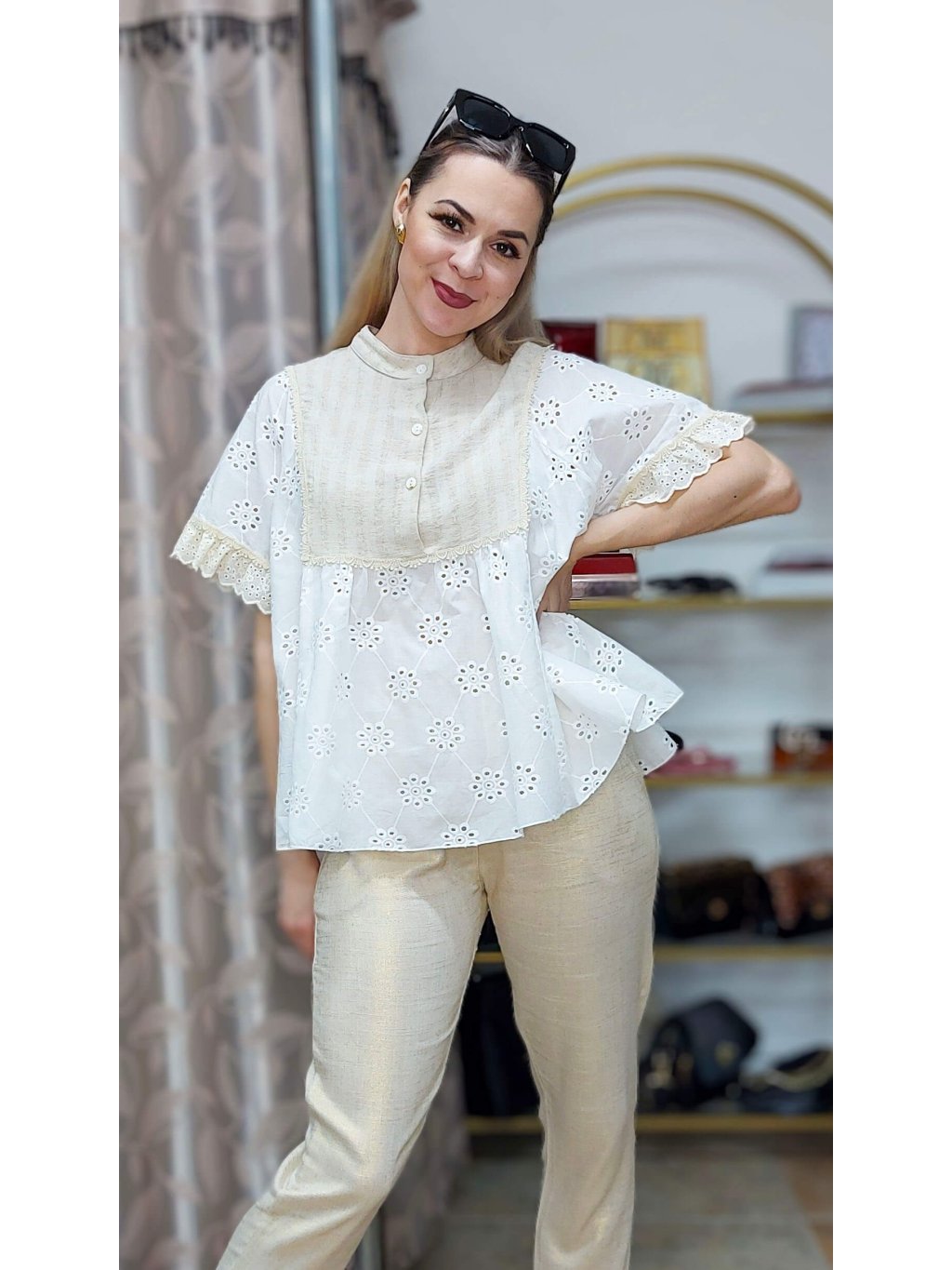 - táto madeirová blúzka skvelo vynikne aj s klobúkom, slamenou kabelkou a jemnými sandálkami