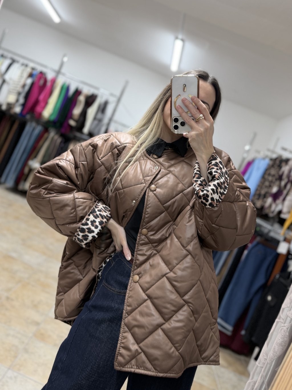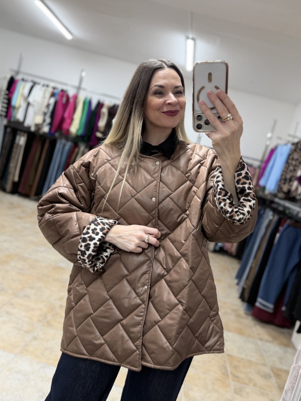 - oversize hnedá bunda s leopardím vzorom vo vnútri je výrazný a trendový kúsok