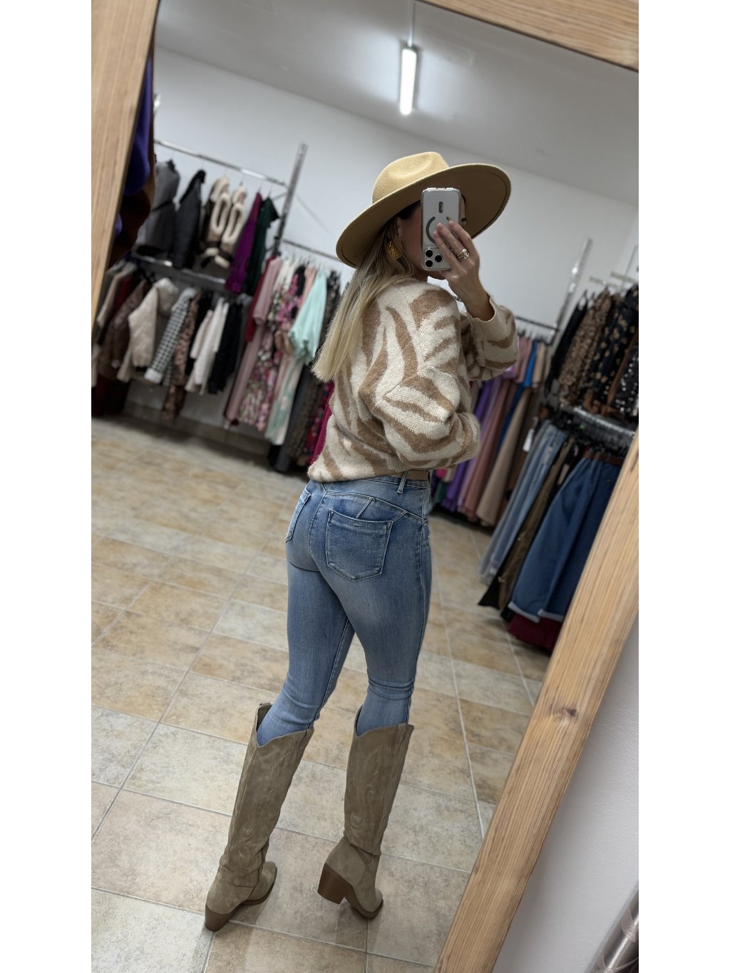 - úzky skinny strih krásne obopína nohy a spolu s vysokým pásom a prepracovaným push-up efektom výrazne zvýrazňuje siluetu