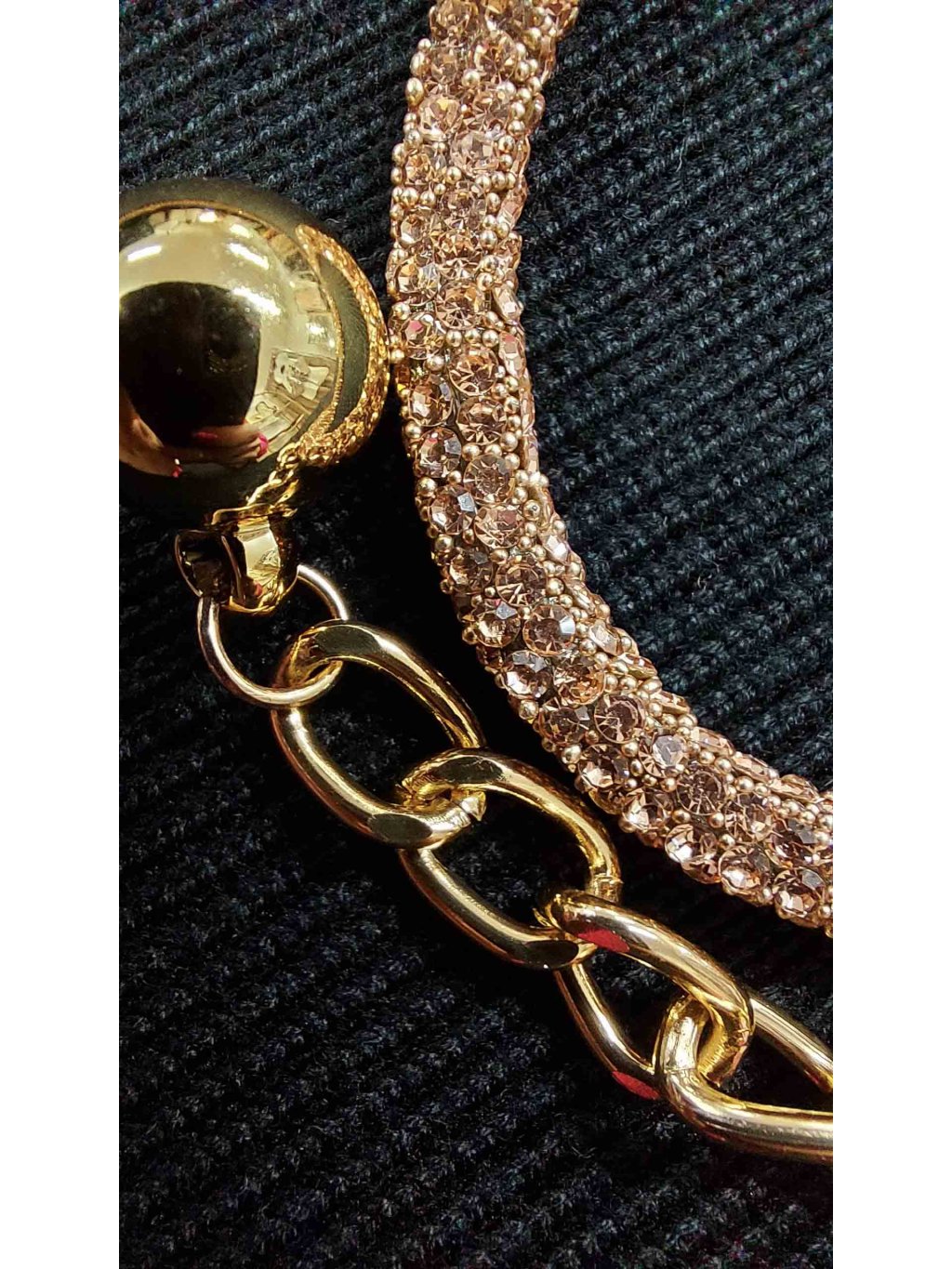 - na ňu nadväzuje jemná zlatá reťazová časť, ktorá slúži na upevnenie pomocou malej zlatej karabínky
