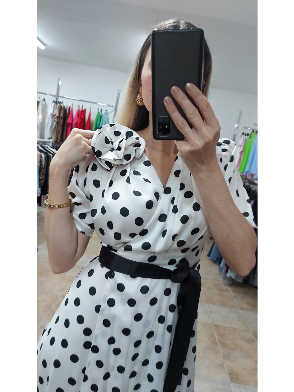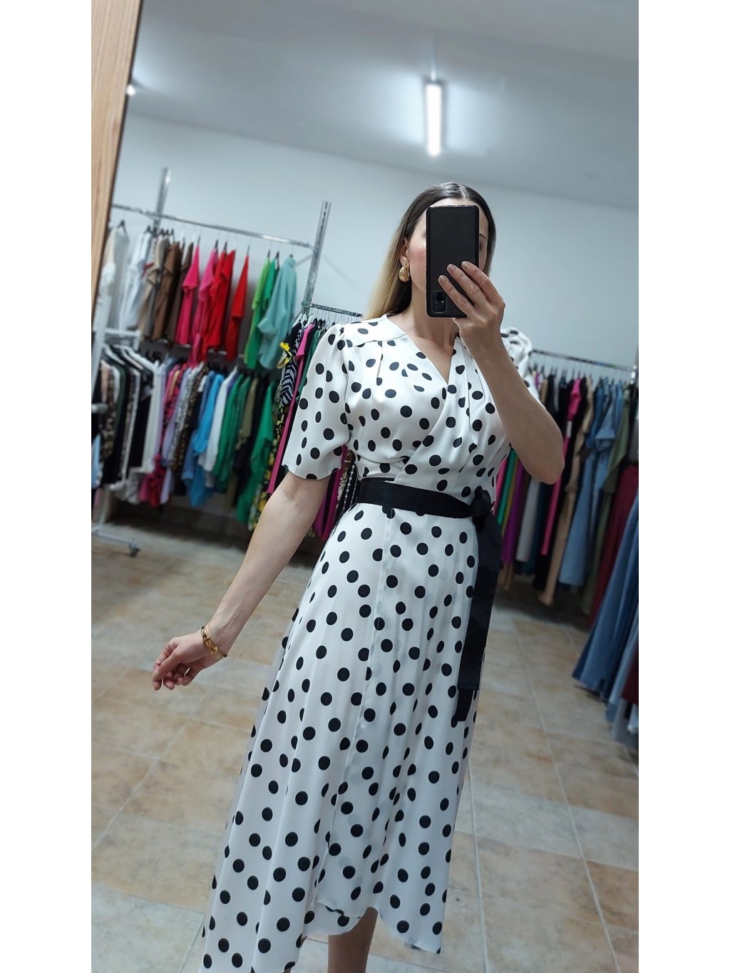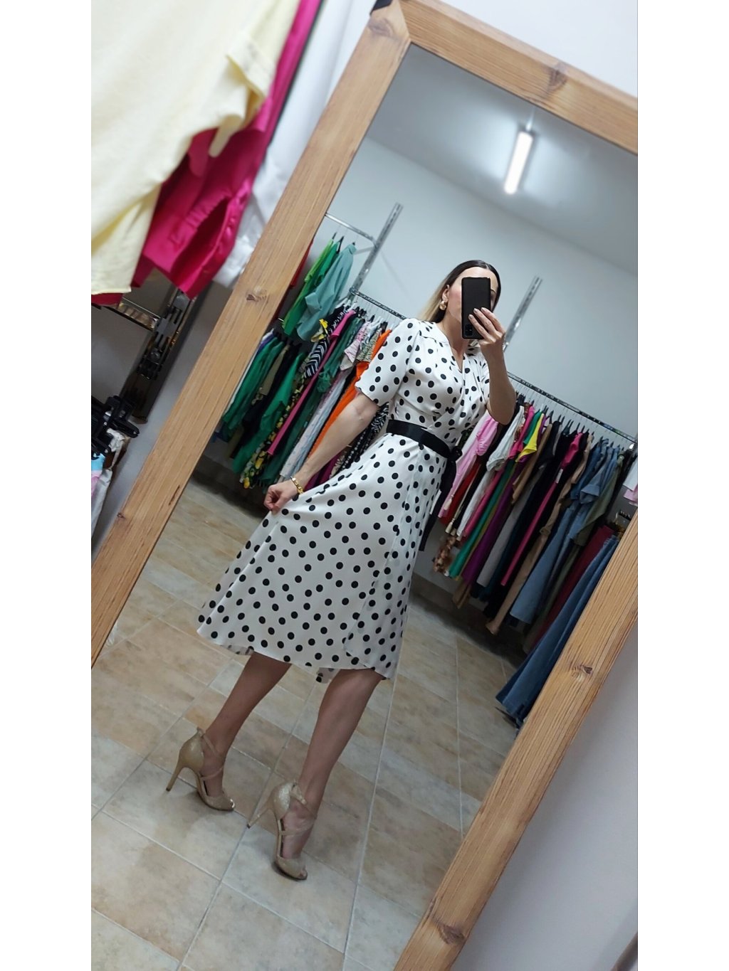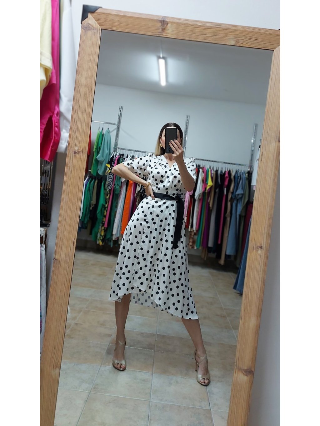 - retro bodkované šaty z prémiového saténu, stvorené na horúce letné dni