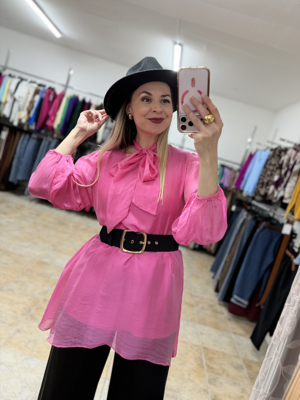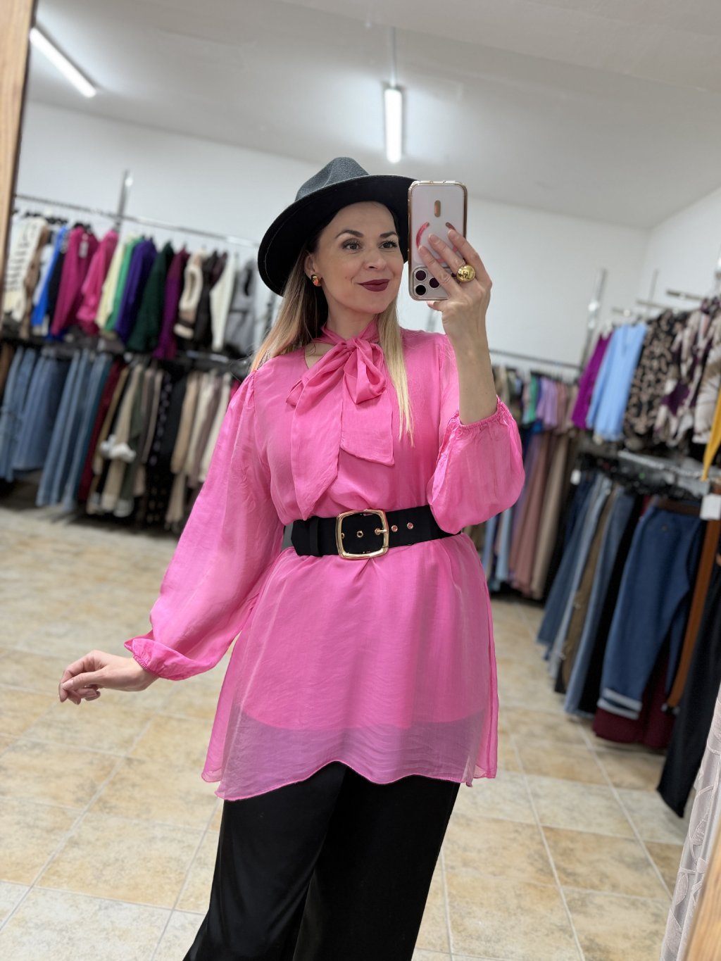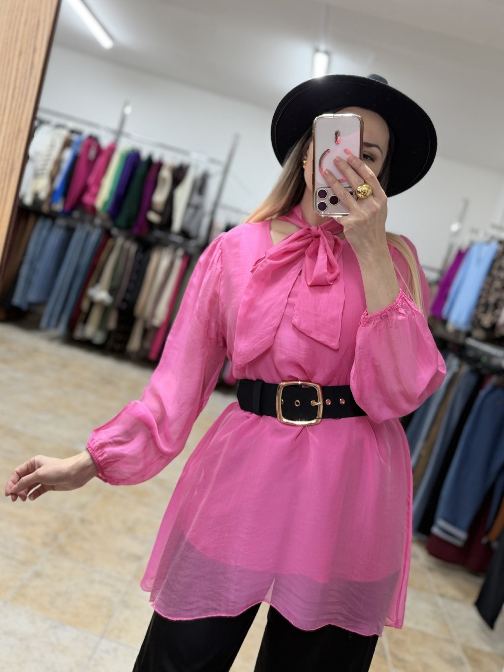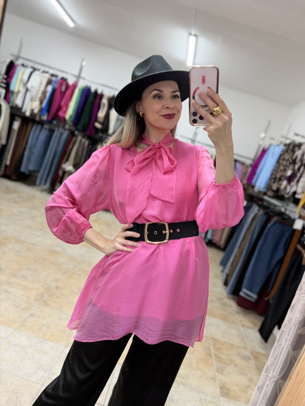 - luxusná hodvábna ružová dámska predĺžená blúzka z pravého hodvábu s jemným leskom