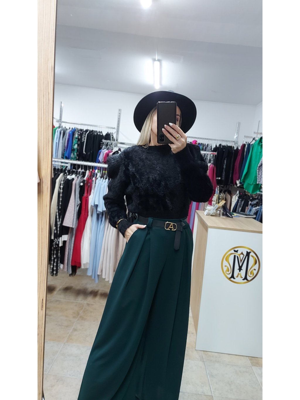 - nechýbajú ani putká na opasok a štýlový koženkový látkový opasok so zlatou prackou, ktorýje ich súčasťou a dotvára tak celý look