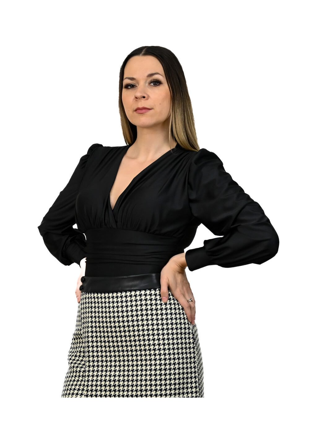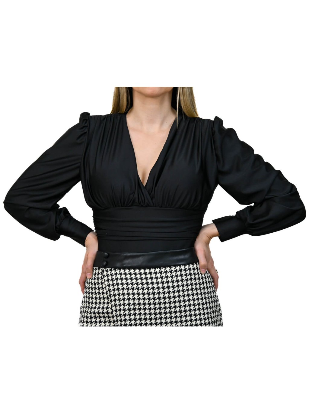 - spoločenské body s dlhým rukávom v čiernej farbe je vyrobené z veľmi príjemného, elastického materiálu s jemným matným efektom, ktorý sa podobá likre