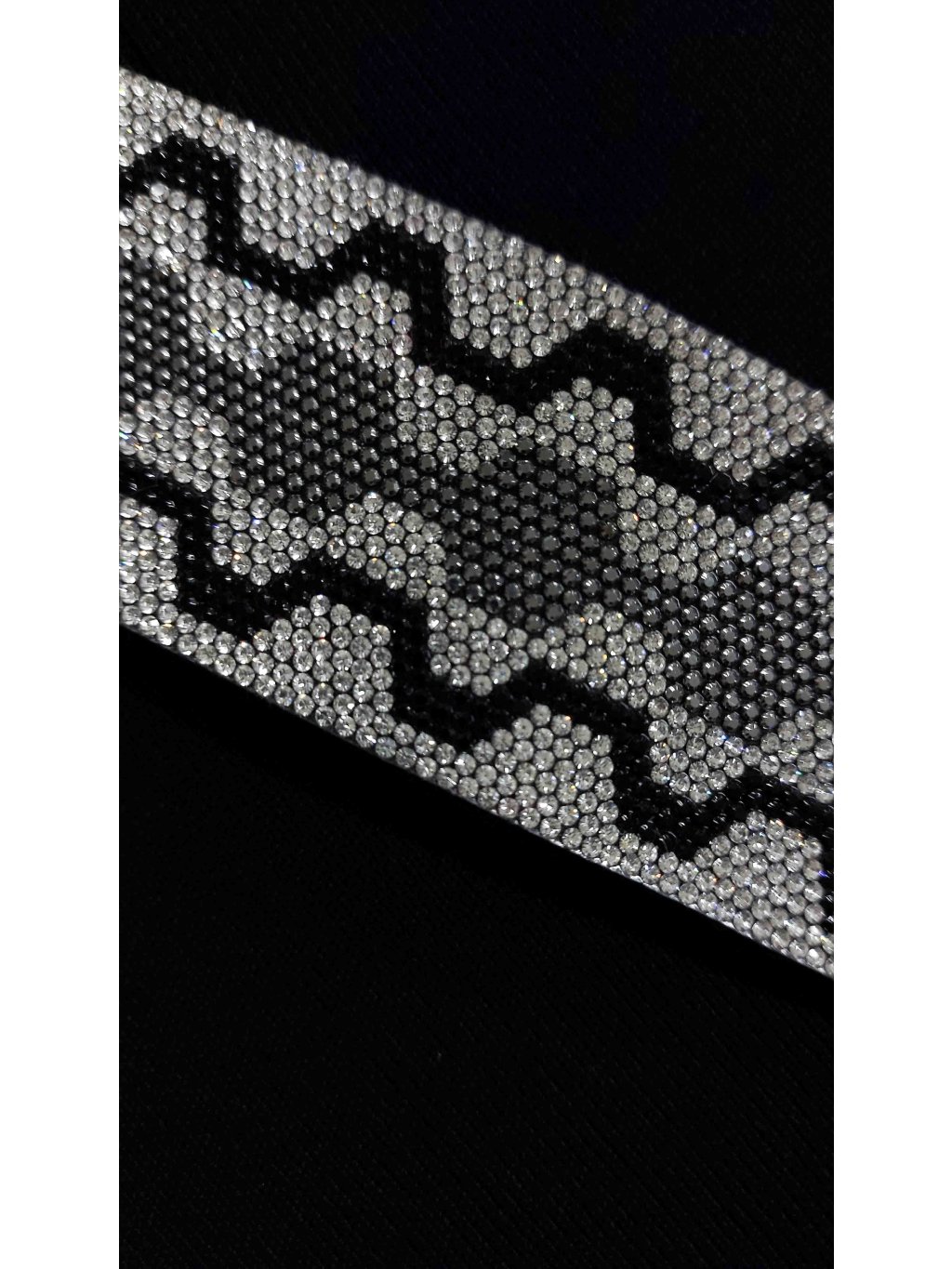- predná časť z jemnej koženky je posiata trblietavými kamienkami, ktoré vytvárajú jemný geometrický vzor v čierno-striebornej kombinácii