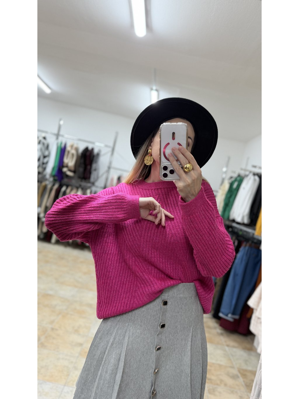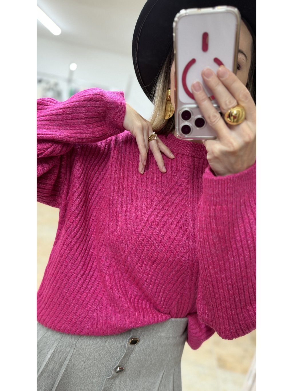 - to, čo robí tento sveter výnimočným, je jeho krásna fuksiová farba – sýta, energická a neprehliadnuteľná