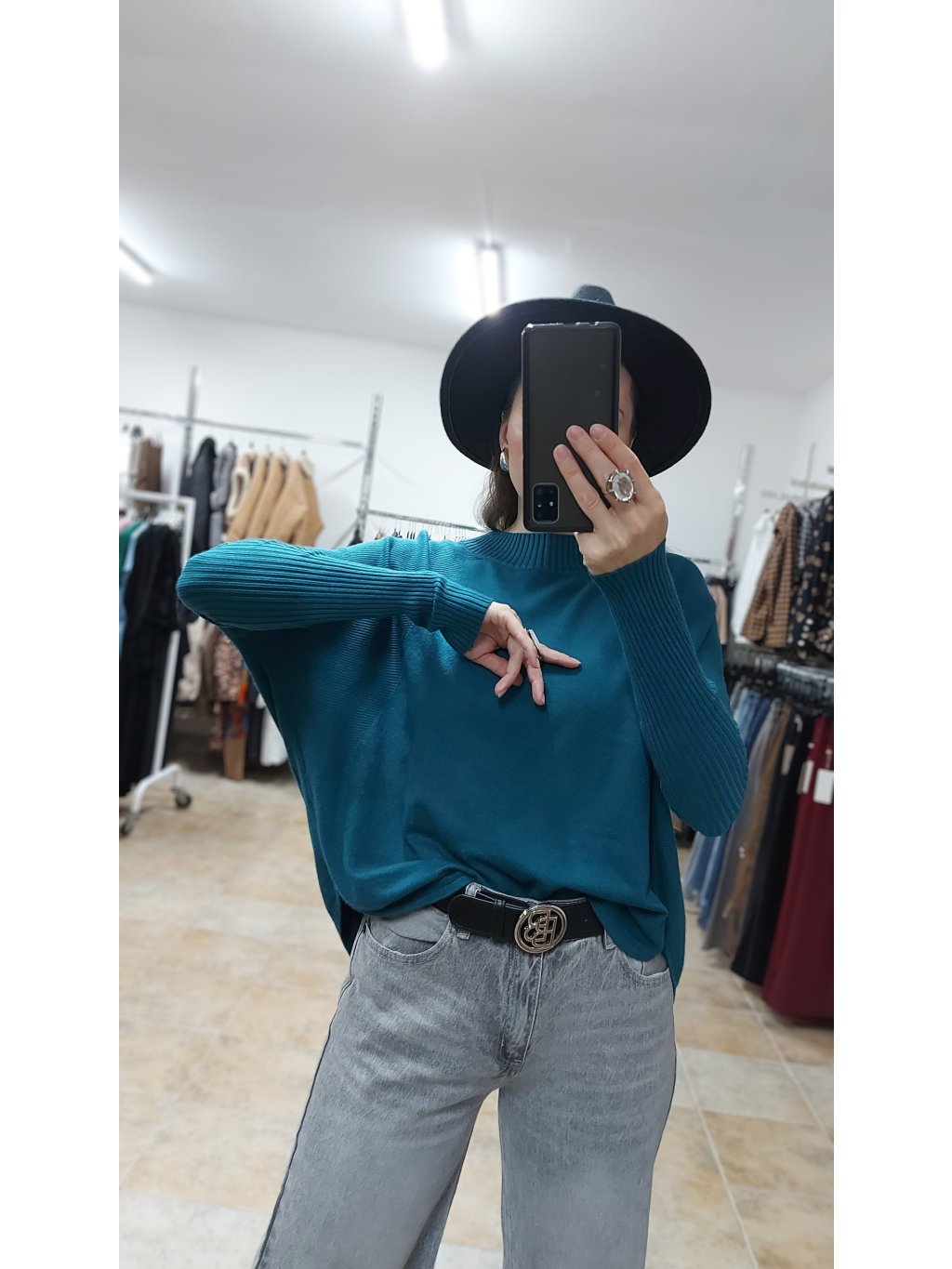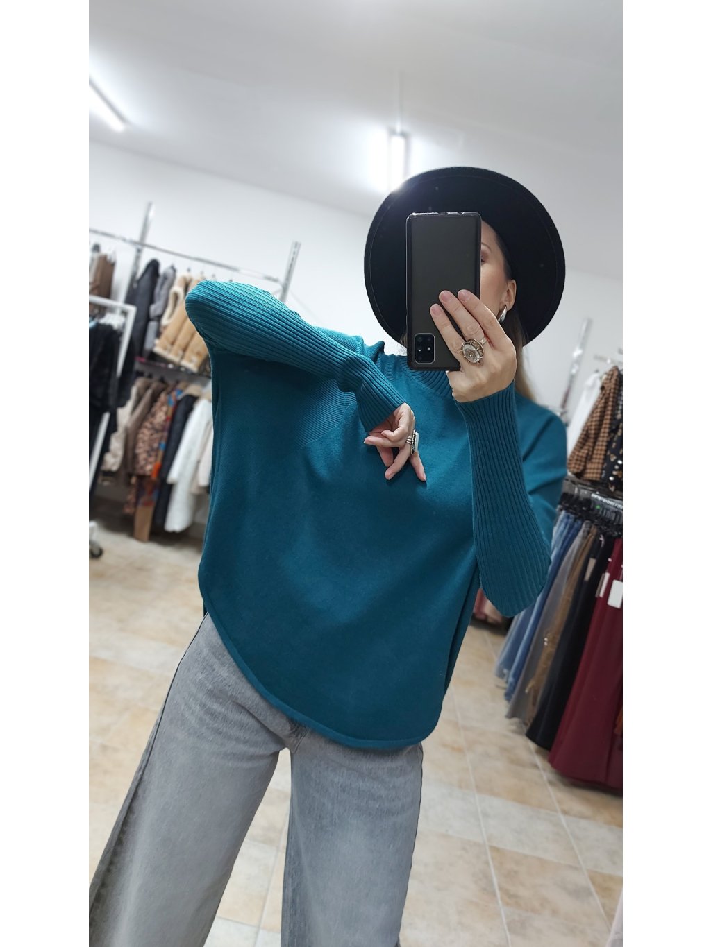 - zelený pulóver Willow v odtieni hlbokej petrolejovej farby pôsobí elegantne, nadčasovo a útulne